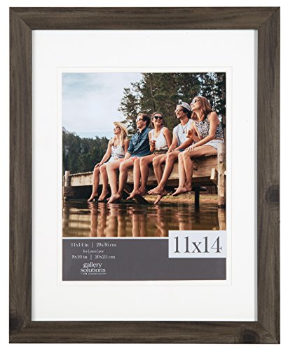 GALLERY SOLUTIONS 11x14 Flat Distressed Dark Grey Wash Wall Frame with White Mat For 8x10 Image