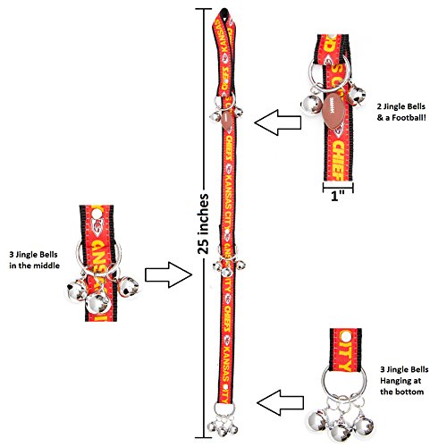 Want to avoid any accident? Do you hate barking? Simple Solution! Your sporty pup will love going outside with this attracting team training bell!!! Use this Pets First Training Doorbells to stop your doggy from barking when it’s time to go outside! No more OOPS No more Barks! The Potty Bells 22” long heavy duty webbing features: - Team colored woven tape that has the?TEAM NAME LOGO!