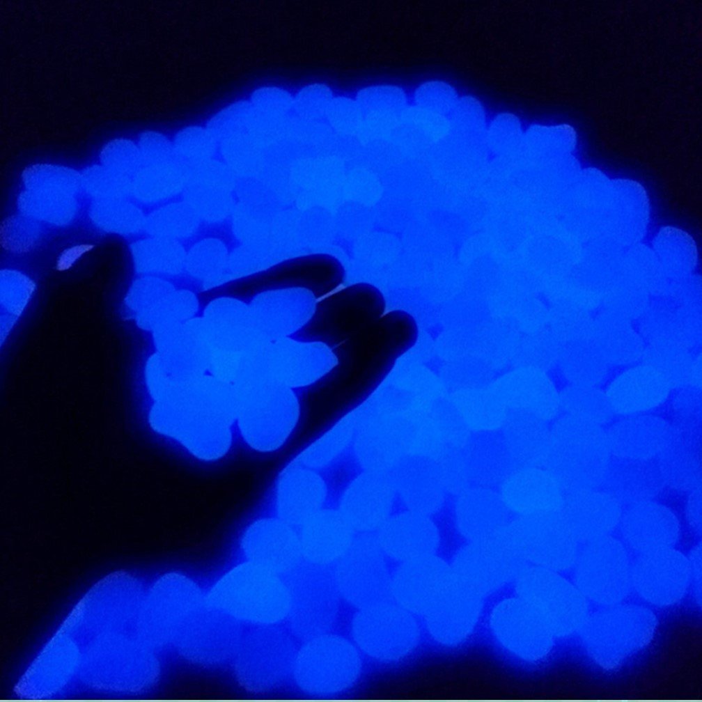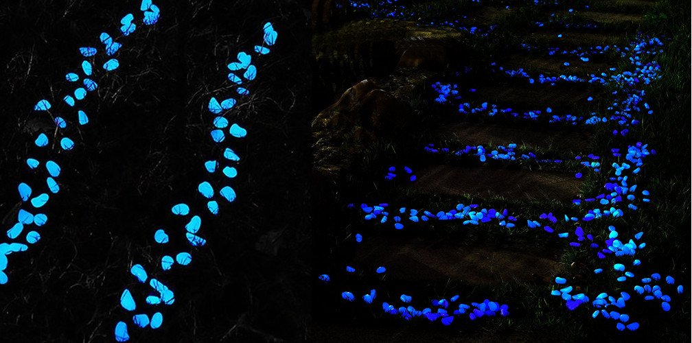 After being exposed to daylight, these pebbles glow (Sky Blue) in the dark.