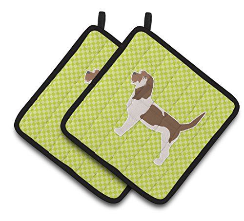 Caroline's Treasures Grand Basset Griffon Vendeen Checkerboard green Pair of Pot Holders BB3790PTHD, 7.5HX7.5W, Multicolor