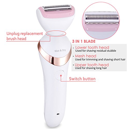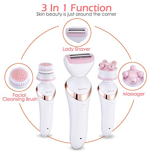 - Multi-Function: 3 in 1 Lady Shaver includes Shaver Head, Facial Cleansing Brush Head, Massager. One machine can achieve shaving, deeply face cleaning and massge effects that meet your different beauty care needs
