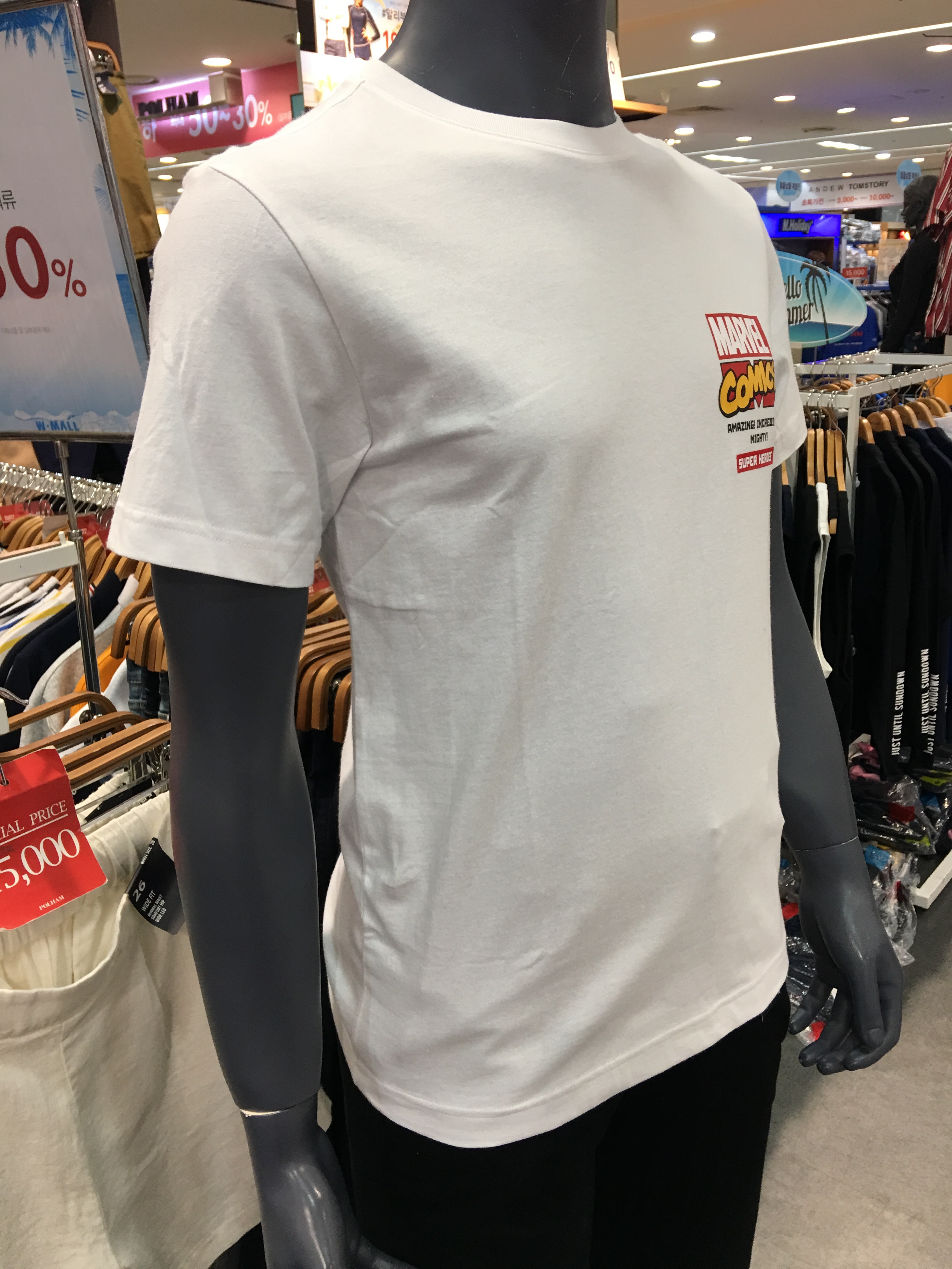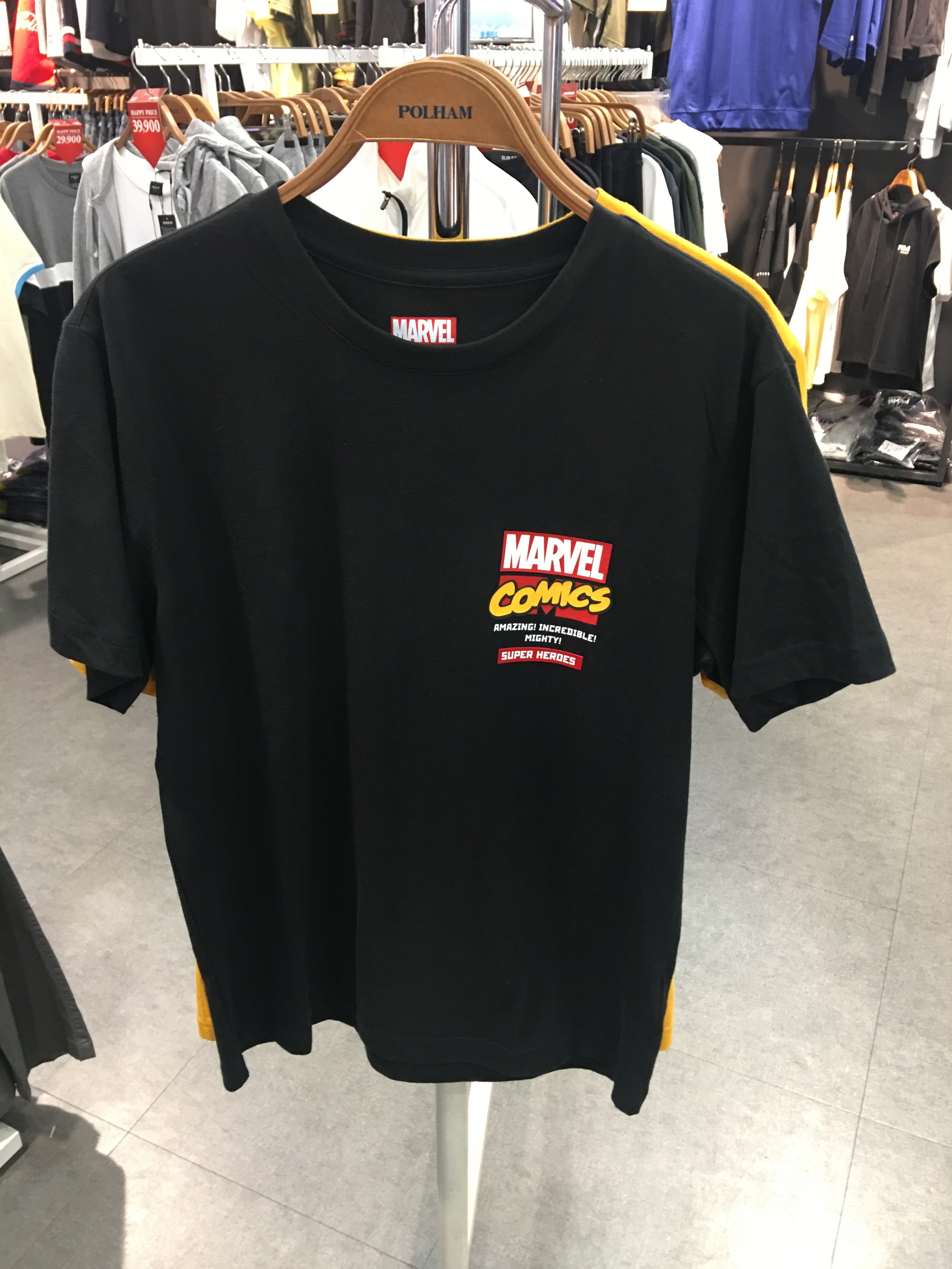 마블X폴햄 콜라보 라운드넥 반팔티셔츠 입니다. 18S/S시즌의 마블 콜라보 아이템으로 리미티드한 느낌으로 착용할수 있습니다!^^ 커플룩으로 입기 좋으며 , 마블 팬이라면 하나씩 입고싶은 반팔 티셔츠입니다!