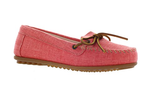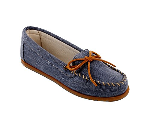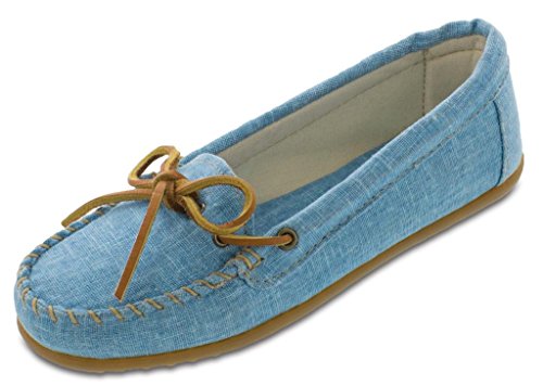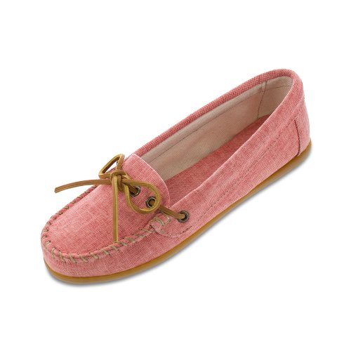 A durable, lightweight canvas moc in cool and refreshing colors for spring. Fabric lining. Sporty rubber sole. Padded cushion insole.