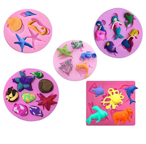 (Mity rain)/Kitchen Dining/Cookware Baking/DIRECT FROM USA/(set of 5)Mini Sea Creatures Summer Beach Theme Silicone fondant mold Chocolate Mold for Sugarc...