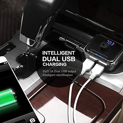 System features: Dual USB ports car charger with Bluetooth FM transmitter as well as a window breaker uses the most advanced charging technology available to give your devices get the fastest possible charge meanwhile allows you to play music from your phone to your car stereo system via Bluetooth as well as allow you to answer the phone hands free every time you drive. A must-have device for people who need to recharge or on road trips.