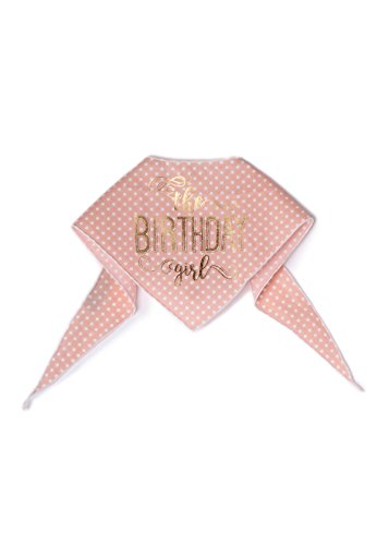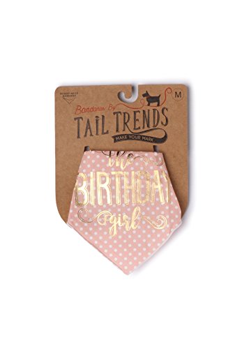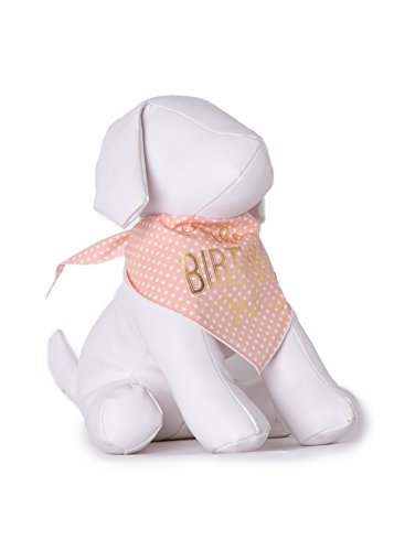 Studio : Doggone Cute Inc. Publisher : Doggone Cute Inc. Binding : Misc. Product Description Designer-made birthday bandana is made of 100% cotton fabric, and it features fancy curlicue lettering in a gold foil screen print that will surely make your furry friend the center of attention on that special day. Cotton bandana has a special boomerang shape that makes it a comfortable wear for your little friend. Fabric is reinforced by stitched edging, so that you get longer wear and value from your purchase. Machine washable in delicate cycle. Lay flat to dry. Medium Size fits 8"-15" neck line, dimensions are 21 x 6 inches (W x L). Large Size fits 16"-24" neck line, dimensions are 25 x 9 inches (W x L) 0