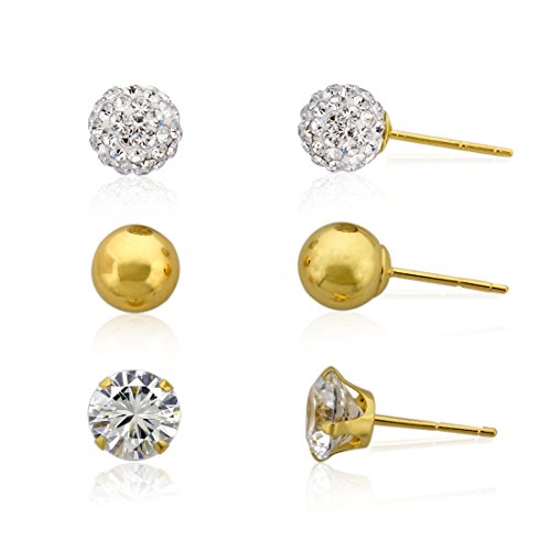 Set of 6mm-CZ, Ball and Crystal Ball Earrings, Guaranteed with 10k Stamp