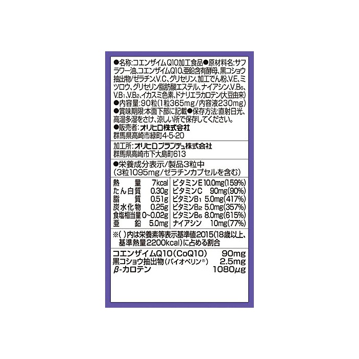 3알(1095mg)에 코엔자임Q10(CoQ10)를 90mg배합했습니다.