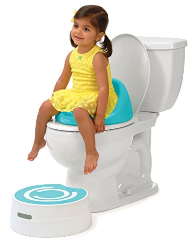 - Feature : Transitions from a potty chair to a toilet trainer and a step stool / Removable waste cup for easy clean-up / Non-slip surface grips the floor to keep your child steady in every stage of use / Trainer uniquely adjusts to fit most round and elongated toilet seats / Soft splash guard is large enough for boys, but easy to fold away for girls