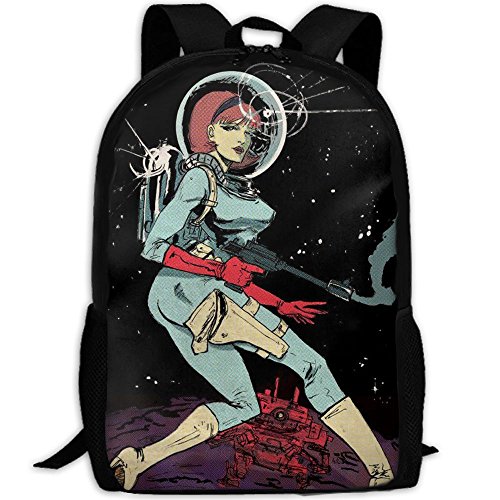(FGH)/Accessories/Luggage, Bags Travel/DIRECT FROM USA/Female Astronaut Fire A Gun Adult Backpack College Daypack For Men And Women Oxford Cloth Bag