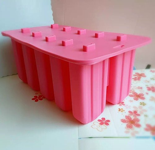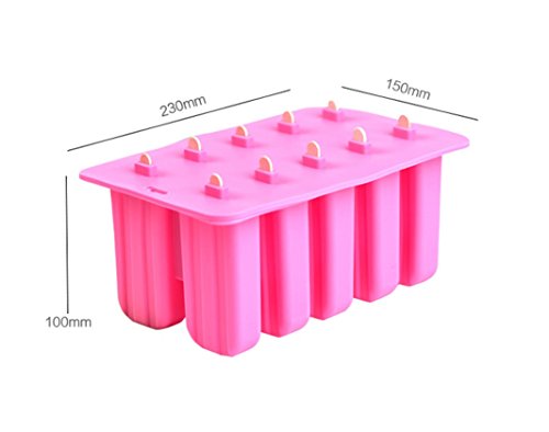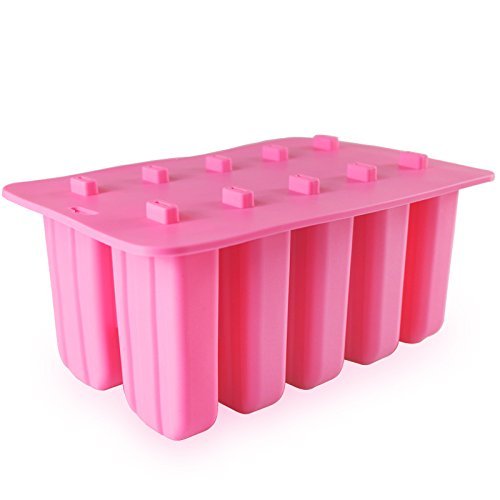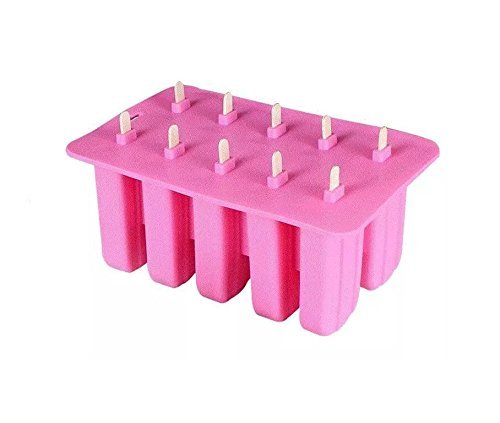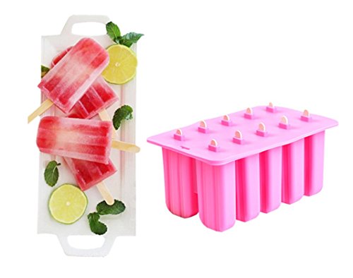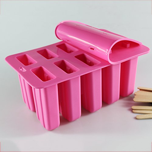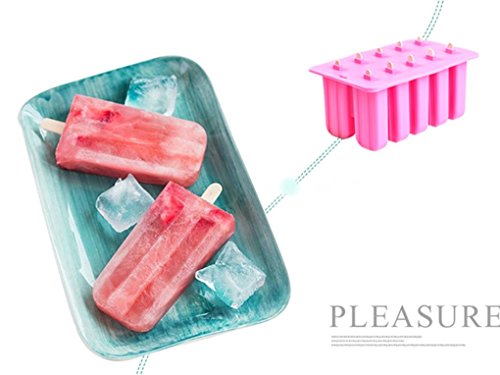 Astra Gourmet 10-Cavity Slicone Frozen Ice Pop Maker Popsicle Mold wth 50 CT Wooden Sticks for Toddlers, Kids and Adults - BPA Free(Pink)