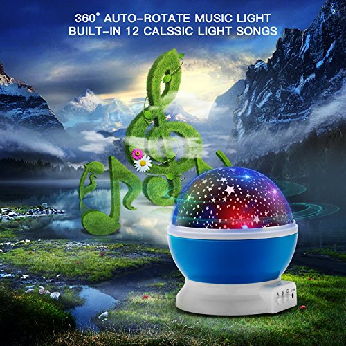 360° Rotating Music Night Light -- Automatically play 12 light music on loop, this moon stars projector can help your child get a good night's sleep.