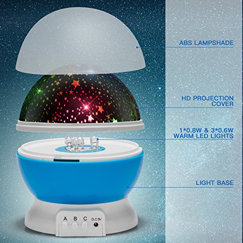 Rechargeable Battery Included -- No need to buy extra batteries, charging 4 hours can enjoy the moon stars projector for 12 hours.