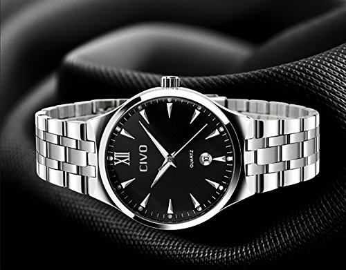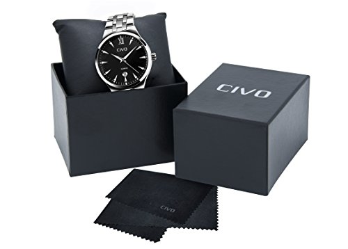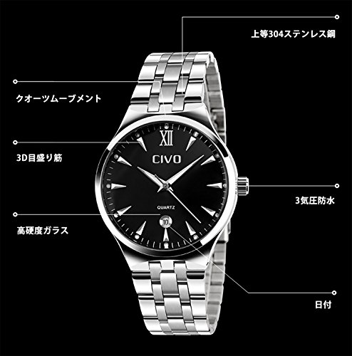 -. Title : CIVOメンズ腕時計 アナログクォーツ防水腕時計 アナログウォッチ ブラックダイヤル 3D夜光目盛り シンプルデザイン 日付表示カレンダー カジュアルビジネス男性用 ファッション腕時計 金属替えベルト 日本語取扱書 駒外し付け