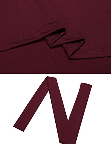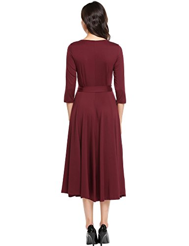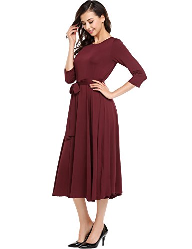 Women Casual Scoop Neck Vintage 3/4 Sleeve Retro Cooktail Party Vacation Business Swing Dress with Belt made of 95% Rayon 5% spandex