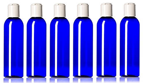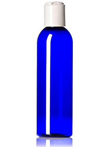 Newday Bottles, Plastic Bottle 4 Oz Cobalt Blue PET Cosmo Bullet Round BPA-Free with Hand Press Smooth White Disc Cap Lid, Pack of 6