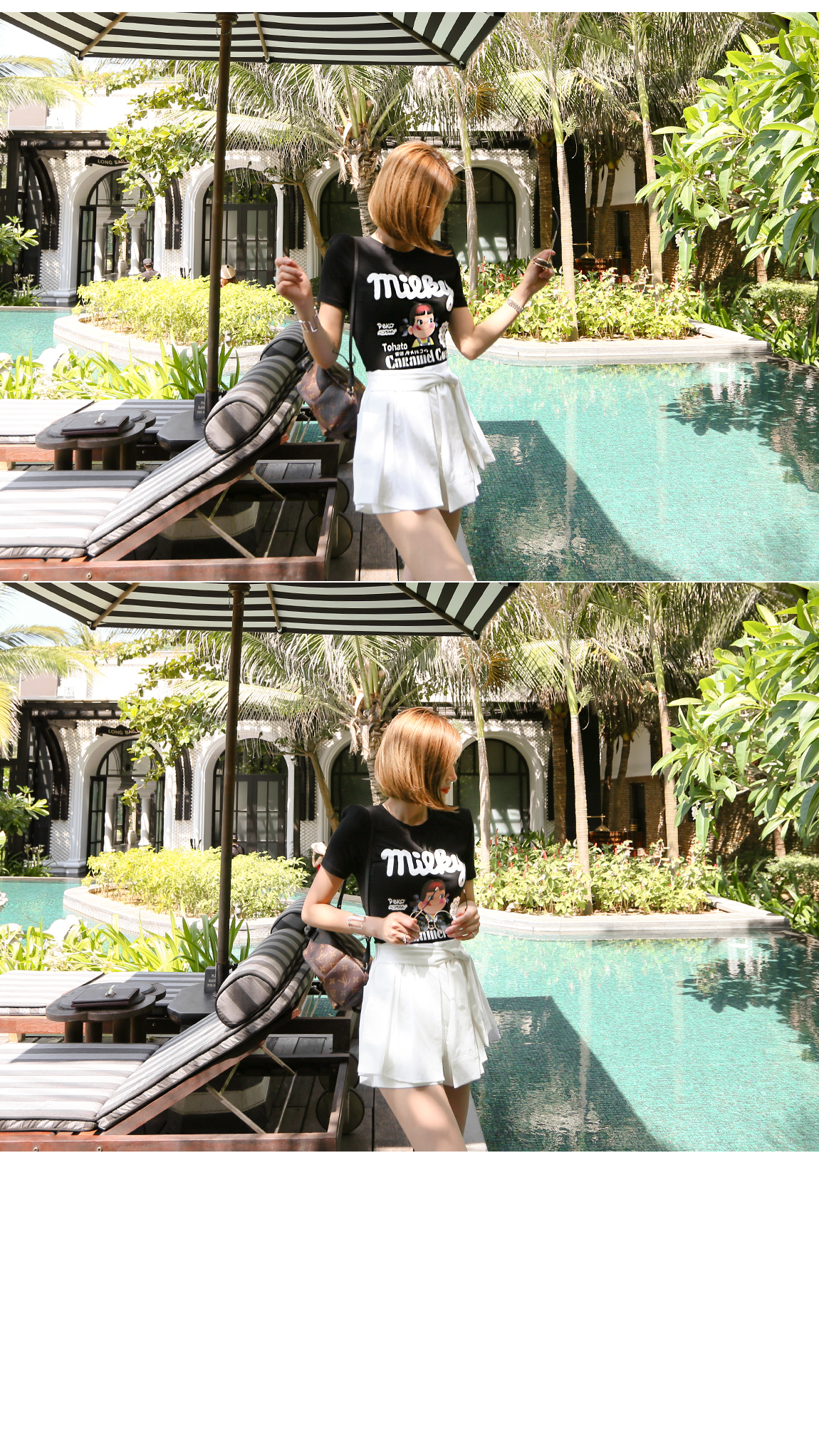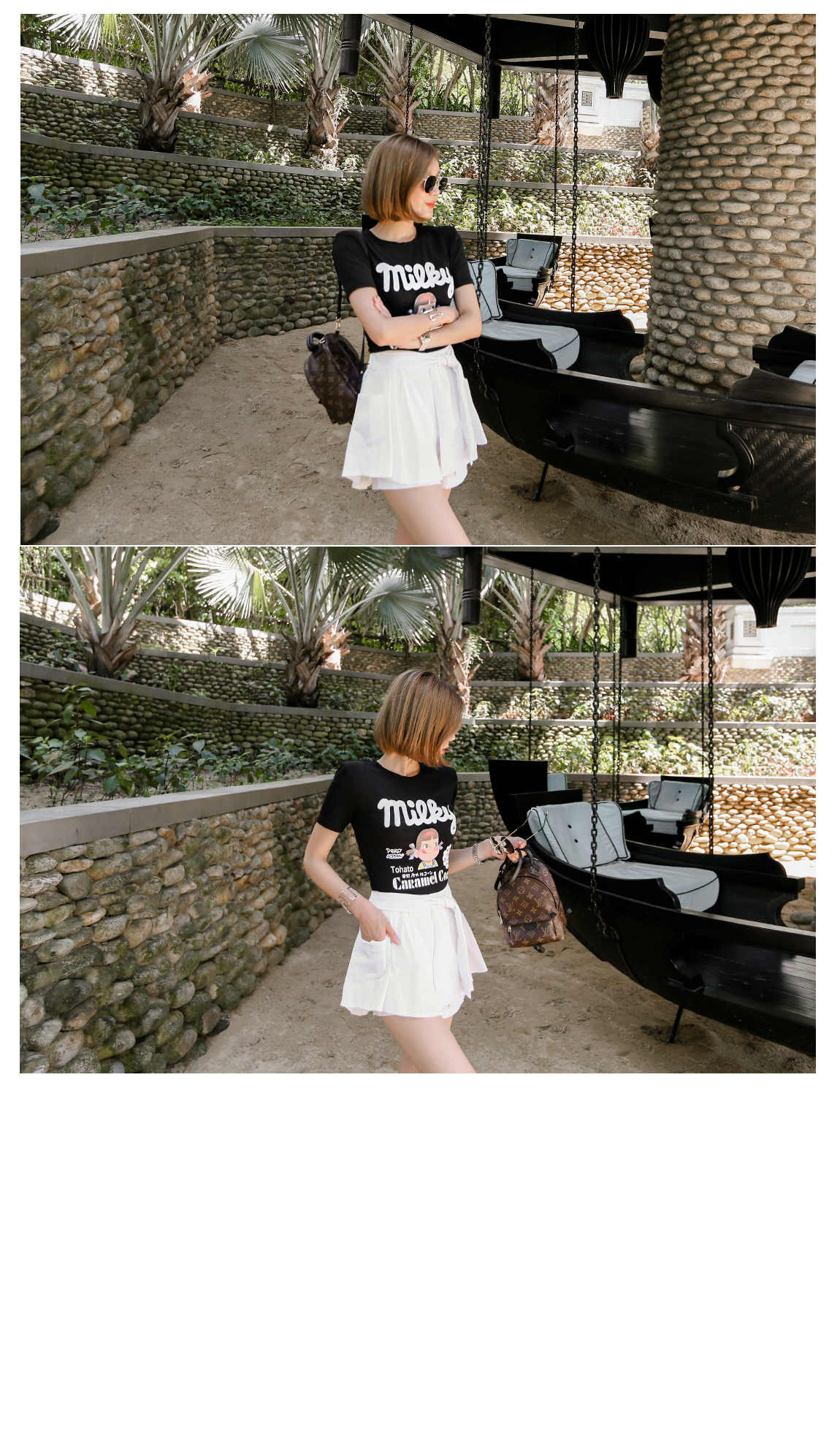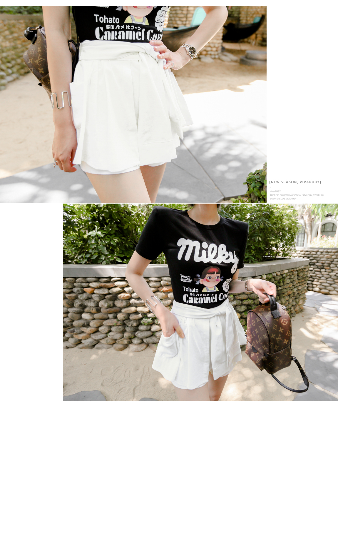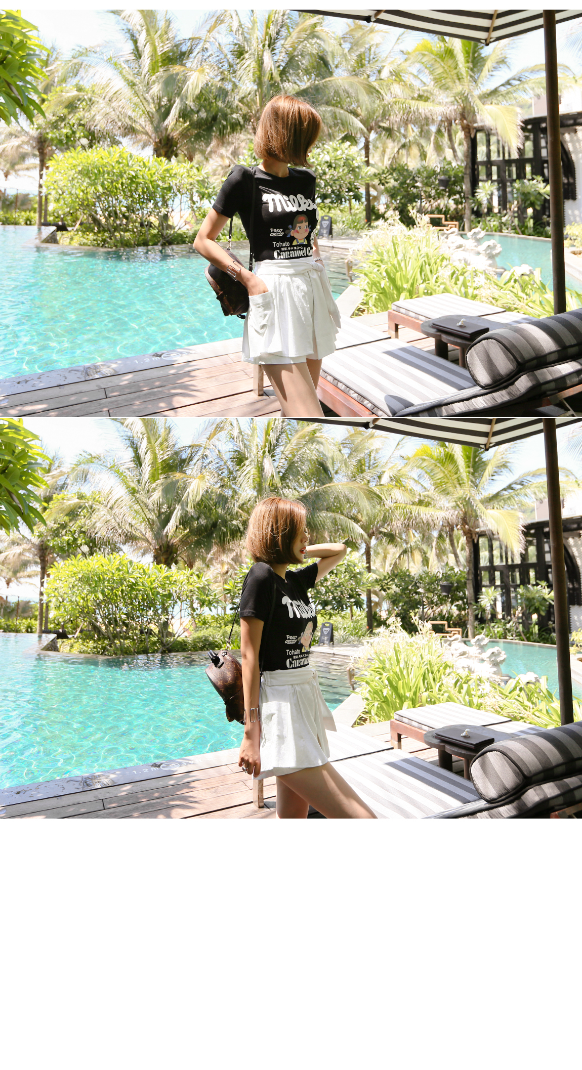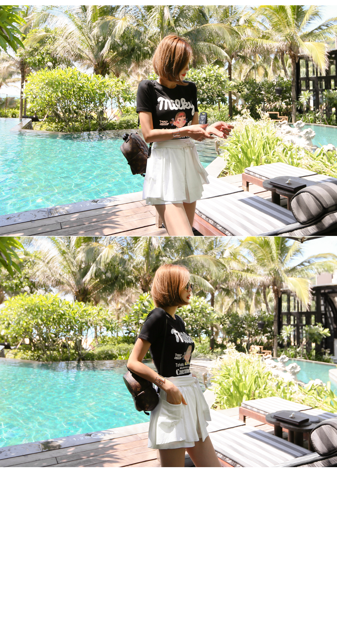 パンツの上にスカートのようにレイヤードなったデザインが魅力的です