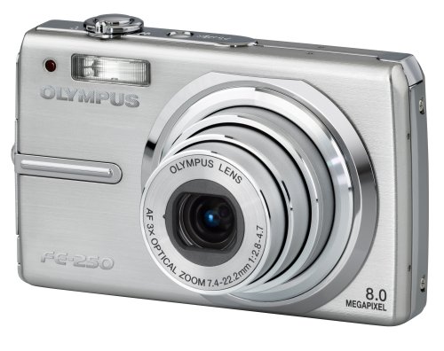FE-250 digital camera; Wrist strap; Quick Start Guide; Lithium-Ion battery (LI-42B) and charger (LI-40C); USB cable, Audio/Video cable; Olympus Master 2.0 Software CD-ROM; Basic Manual and Advanced Manual CD-ROM; Warranty card