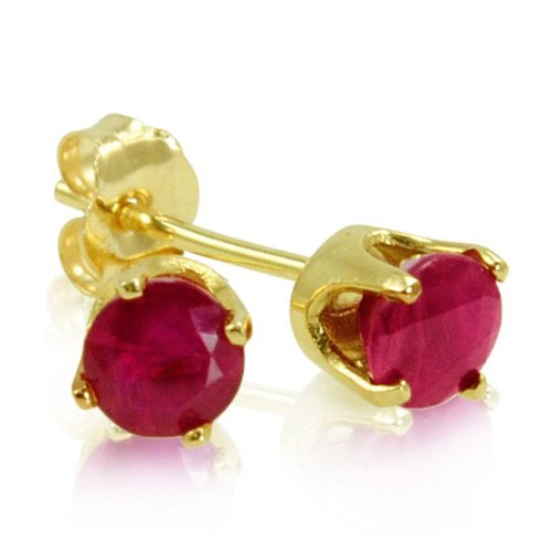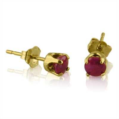 - Title : 4mm Round Ruby Stud Earrings set in 14 Karat Yellow Gold (.60ct tw)