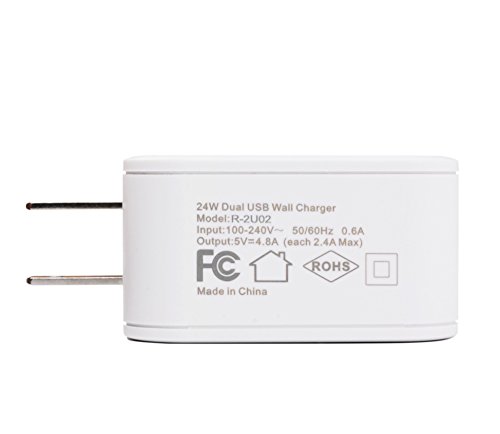 Dual-USB output with 24W / 4.8A enables you to charge two of your mobile devices simultaneously & rapidly, including tablets, smartphones, e-book readers, etc.