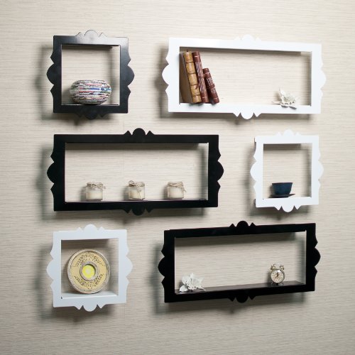 - Feature : Scalloped edges and floating effect makes it resemble a frame rather than a wall shelf / Metal construction with glossy black powder coated smooth finish / Screws and simple installation instructions included - keyhole style mounting. / 26.5 in. L x 3 in. W x 12.5 in. H (4.75 lbs)
