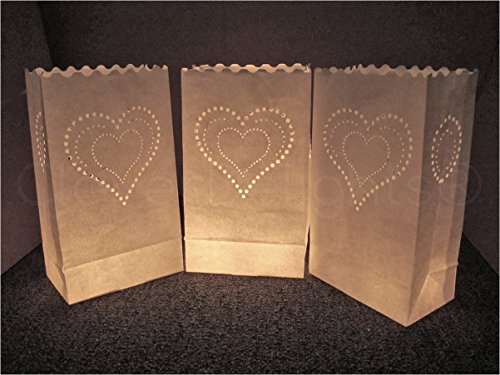 -. Title : CleverDelights White Luminary Bags - 10 Count - Heart of Hearts Design - Flame Resistant Paper - Wedding, Reception, Party and Event Decor - Luminaria Candle Bag