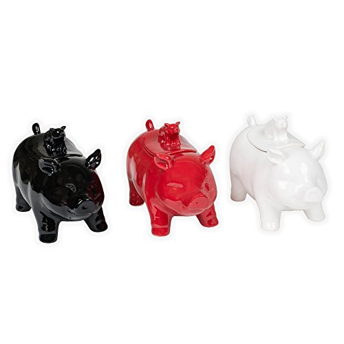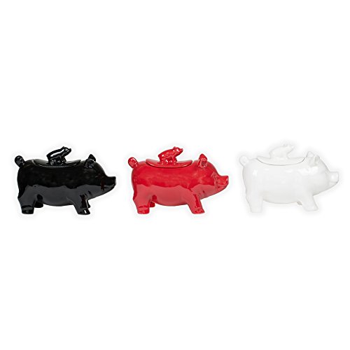 Ceramic Farm Pig Figurines 3 Pc Canister Set with Lids