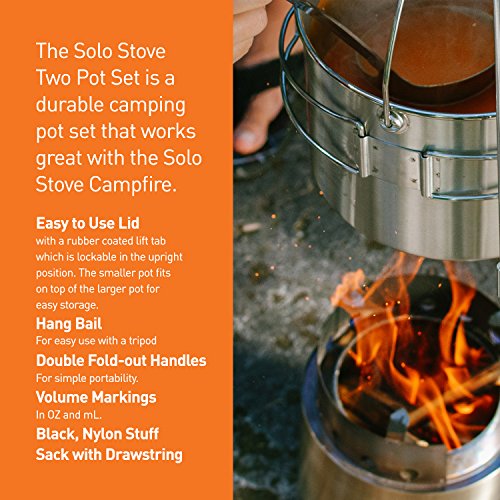 The lightweight Solo Stove 2 Pot Set is the companion pot set crafted specifically for use with the Solo Stove Campfire. When nested, the Solo Stove Campfire fits inside the Solo Stove 2 Pot Set for easy storage. Made with premium grade 304 stainless steel, the Solo Stove 2 Pot Set is more durable than aluminum pots and arguably, a safer and healthier choice.