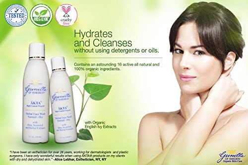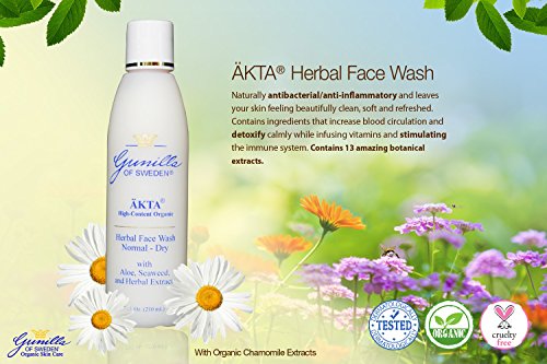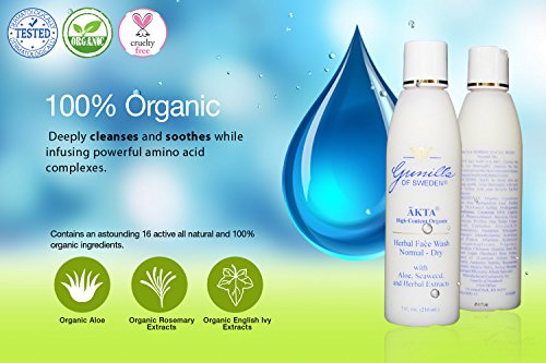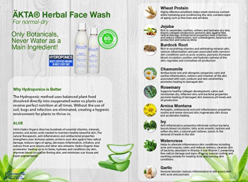 ÄKTA® Herbal Organic Face Wash for Normal/Dry Skin 7 oz: Based on Nutrient Rich Organic Aloe- 13 Organic Botanical Extracts Provide Anti-Aging Benefits- Chamomile, Jojoba, and Sea Kelp Calm and Hydrate- Oil-free