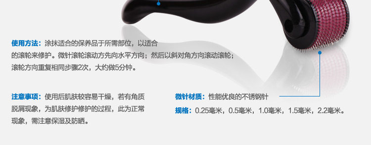 微针好不好就在微针的做工精细程度,好的微针能让每一根针都会接触皮肤,美容院多年操作都是选择这款540微针滚轮