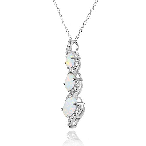 Necklace features a 3-stone twist drop design offering oval-cut simulated white opal gemstones in a prong setting. The design showcases a sparkle with a glistening white topaz border. The necklace includes a thin 18-inch rolo chain. Made of .925 sterling silver.