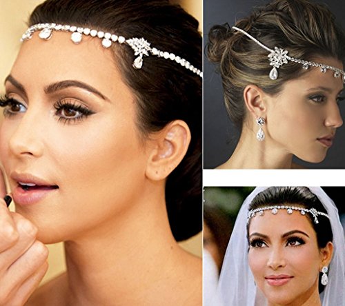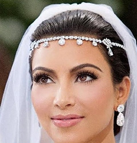 - Title : Bella Bridal-Celebrity wedding Rhinestone hairband Elastic hair band headchain kim rhinestone head chain-NO.212