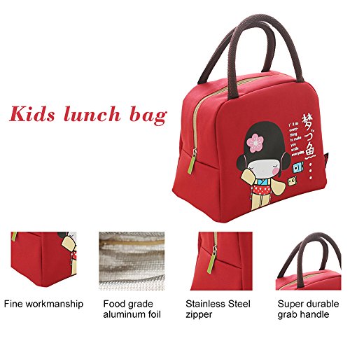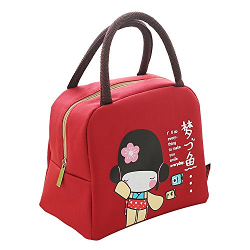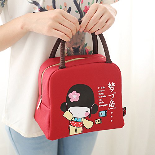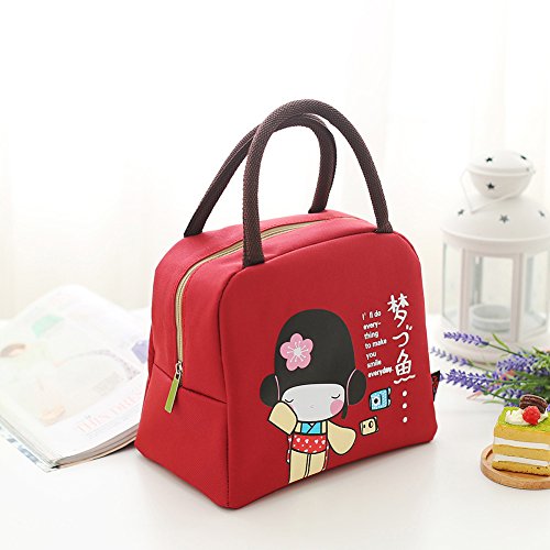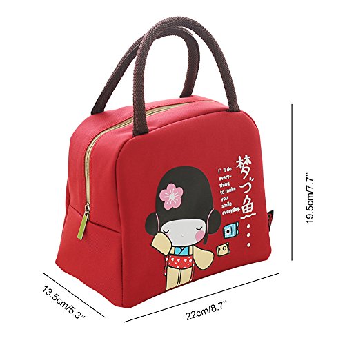 Mini Lunch Bag - Japanese Style Red Lunch Bag - Lunch Tote Bag for Women with Zipper Closure(Red)