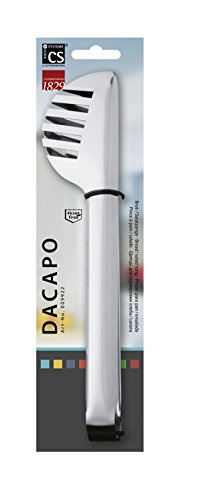 Studio : CS Warehouse Publisher : CS Warehouse Binding : Kitchen Product Description These multi-functional, easy to hanle tongs are made of stainless steel with a mirror polish finish. Its arms end in a wide clam-shape to best grip foods with one side able to let liquids drain. Plus, they are easy to clean. 0