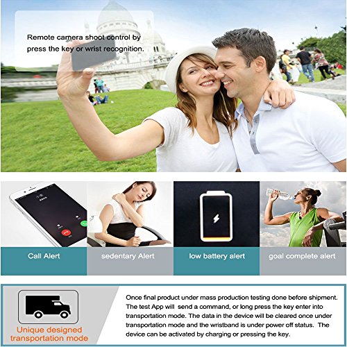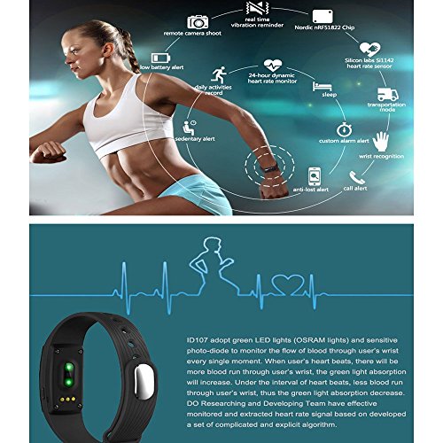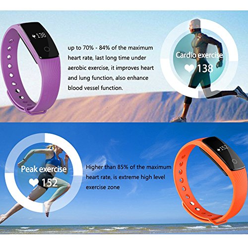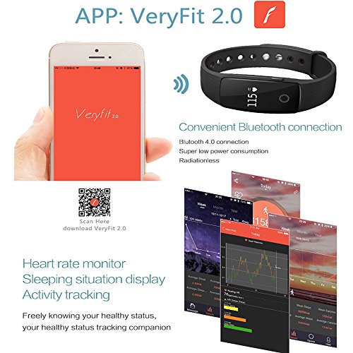 -. Feature : Health Tracker: Heart Rate Monitor, Pedometer, Calories Counter, Distance, Sleep Monitor / See time, date, heart rate, calories, steps, sleep time, stats and call notifications on the OLED display / Other Functions: Alarm Alert, Time Clock, Anti-Lost, Phone Finder / Synchronize stats wirelessly and automatically to your smart phones. Compatible with iPhones, iPads and Android smart phones, tablets. System requirements: iOS 7.0 or above and Android 4.3 or above. Bluetooth 4.0
