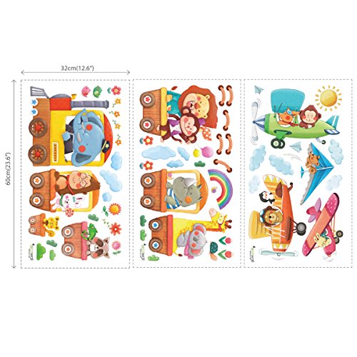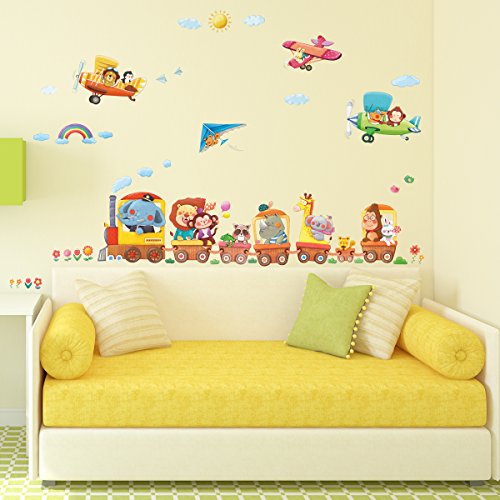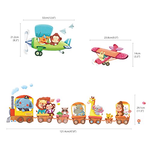 -. Title : Decowall DAT-1406A1506B Animal Train & Biplanes Peel and Stick Nursery Kids Wall Decals Stickers