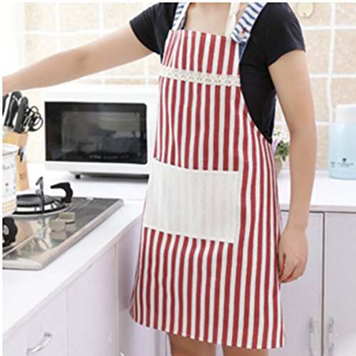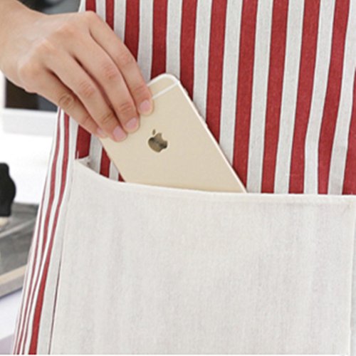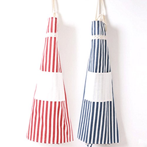 CiCy 2PCS Cotton Canvas Women's Apron with Convenient Pocket ,Cooking Apron with Stripes for Women Professional Stripe Chef Apron for Cooking, Grill and Baking(red and blue)
