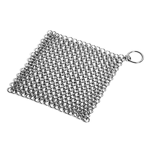 Smaller rings in a larger 8 inch by 8 inch size! Larger than the other similar products in the market, save much time for you! The Small Ring Chainmail Scrubber - Makes Cookware Cleanup Quick and Easy.