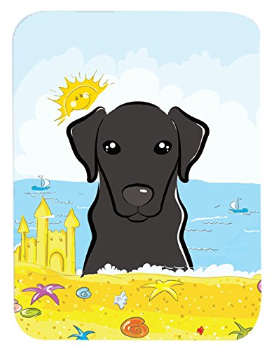 Caroline's Treasures BB2103LCB "Black Labrador Summer Beach" Glass Cutting Board, Large, Multicolor