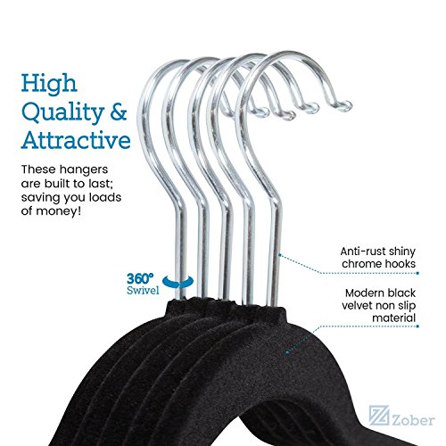 -. Title : Zober Premium Quality Space Saving Velvet Hangers Strong and Durable Hold Up To 10 Lbs - 360 Degree Chrome Swivel Hook - Ultra Thin Non Slip Suit Hangers, Black