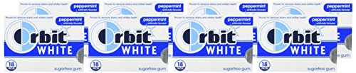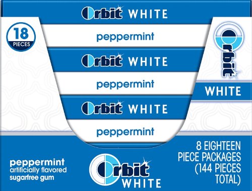 Orbit White Peppermint is a sugar-free gum proven to help remove stains and whiten teeth when you chew two pieces after eating and drinking (based on an 8-week clinical test).