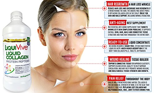 -. Binding : Health and Beauty -. Brand : Life Miracle USA -. Color : Clear -. EAN : 0697547848273 -. Feature : COLLAGEN IS A MIRACLE WORKING ANTI-AGING POWERHOUSE - We lose 1-2% of our collagen every year after age 30, which is when physical aging becomes noticeable. LiquiVive collagen is an essential anti-aging supplement that targets skin care problems and supports overall skin, hair and connective tissue function and structure throughout the entire body. Also supports the reduction of body fat, while maintaining and building lean muscle tissue. May help to naturally increase your metabolism. / AMAZING ANTI-AGING BENEFITS. Builds and strengthens bone matrix. Collagen is the mechanical strength of bone, joints and the entire structure of your body. Repairs and builds connective tissue for improved elasticity, improves blood vessel quality to help improve circulation, and can help promote wound healing and a clearer complexion--all physiological attributes that break down naturally as we age. / LIQUID COLLAGEN PROTEIN IS FAR MORE ABSORBABLE THAN PILLS - The problem with collagen pills and tablets is they have to go through the entire digestive process to be broken down, and you body only uses what is left over. Our liquid collagen peptides have the highest bioavailability and net protein utilization, because it is in liquid form. It is predigested and hydrolyzed with natural enzymes before bottling. Ready-to-use and no mixing required. Liquid delivery is perfect for people unable to swallow pills, or difficulty consuming solids. / SUPER CONCENTRATED FORMULATION - 240,000mg of collagen amino acid peptides per bottle. Add the concentration to the dramatically higher absorption rate over pills, and you have a super collagen delivery system. This bio-active collagen contains over 90% pure protein concentration. / BUILD AND REPAIR SKIN, HAIR AND NAILS FROM THE INSIDE OUT. Americans spend a fortune on anti-aging creams and serums with dubious results. Doesn't it make more sense to internally replace the cause of your outward aging by collagen supplementation? Collagen is the raw material of your hair, skin and nails (among many other things), and it is only in replacing this loss inside your body where you will see real results wiping away aging markers. -. Label : Life Miracle USA -. LegalDisclaimer : THESE STATEMENTS HAVE NOT BEEN EVALUATED BY THE FOOD AND DRUG ADMINISTRATION. THIS PRODUCT IS NOT INTENDED TO DIAGNOSE, TREAT, CURE, OR PREVENT ANY DISEASE. -. Manufacturer : Life Miracle USA -. MPN : 697547848273 -. PackageQuantity : 1 -. PartNumber : 697547848273 -. ProductGroup : Health and Beauty -. ProductTypeName : HEALTH_PERSONAL_CARE -. Publisher : Life Miracle USA -. Size : 16 fl. oz. -. Studio : Life Miracle USA -. Title : Collagen Liquid Protein Supplement - The #1 BEST Protein Replacement. Anti-Aging From the Inside-Out. Supports Strong Bone & Connective Tissue and Weight Loss. The Ultimate Hair, Skin & Nails Supplement. This Prescription Quality, Pure Super Collagen Hydrolysate Protein Is Better than Whey, Rice, Milk, Pea and h.e.m.p Protein. More Absorbable Than Collagen Pills and Tablets. Type 1 and 3. 16 fl. oz. -. UPC : 697547848273