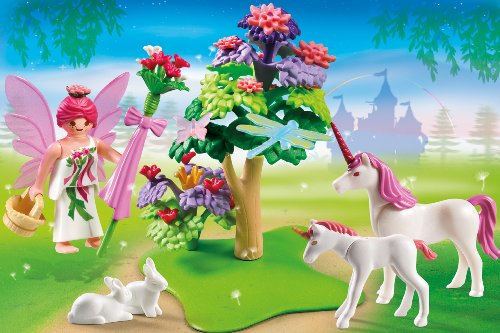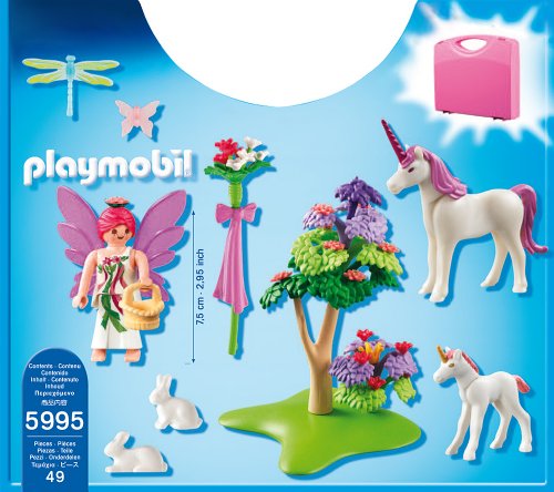 Feature : Take the fun wherever you may go with the Fairy Carrying Case Playset / Playmobil is the largest toy manufacturer in Germany / Figures can bend, sit, stand and turn their heads / Encourages children to explore and learn while having fun / Includes 1 figure, two unicorns, two rabbits, flowering trees and other accessories