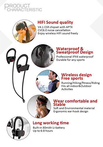 JTD Premium Wireless Bluetooth 4.1 Headphones Noise Cancelling light-weight sweat proof Headphones with Microphone,Great for Sports,Running,Gym,Exercise-Wireless Bluetooth Earbuds Headset Earphones
