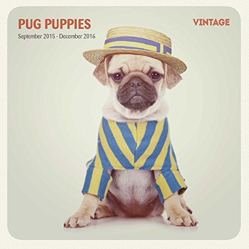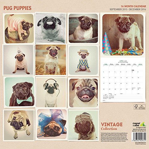 Pug Puppies 16 Month 2016 Vintage Wall Calendar