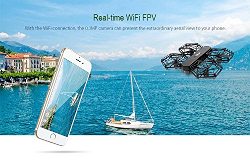 Studio : MANZOKU Publisher : MANZOKU Binding : Toy Product Description This Patent Design detachable mini drone is super unique in its appearance. The barometer set height and built-in six-axis gyro functions that will promise you a stable flight. With 0.3MP camera and Wifi real time transmission, you can enjoy a wonderful flying experience. Pay attention: the phone in the picture not included For first time flying: 1. Please adjust the motor to lowest gear to avoid crash due to high speed 2. Please don't let the drone fly over 10 meters for first trying; after several time practices when you are familiar with all operations, you can fry the drone freely. Be attention: The distance limit is 50m 3. Before flying, please DO make sure to paring the drone and controller 4. If there is any problem, please refer detailed instruction in user manual or send email to us. Specifications: Remote control: 2.4GHz (mode 1/2) Channels: 4 Channels Gyro: 6 Axis gyro Remote control distance: Above 40m Wifi FPV transmission distance: Above 35m Motor: Coreless motor Camera pixel: 0.3MP Drone battery: 3.7V 750mAh Lipo (built-in) Charging time : About 90mins Flying time: About 6-8mins Controller battery: 2 * AAA battery ( not included ) Function: Up/down, turn left/right, forward/backward, left/right sideward flight, headless mode, one key return, wifi FPV, 0.3MP camera, barometer set height etc Product size: 180 * 172 * 35mm / 7.08 * 6.77 * 1.37in Caution for the battery: Don't over-charge, or over-discharge batteries Don't put it beside the high temperature condition Don't throw it into fire Don't throw it into water Notice: This mini drone is not a toy and is not suitable for children under 14 years old, keep it away from children. Carefully read the instruction before any use, if you are a beginner, it's advisable to be assisted by an experienced adult.