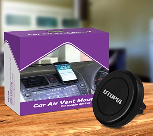 Magnetic Air Vent Car Mount Holder - with Simple and Quick Detachable Design - For Mobile Devices and Mini Tablets - Black - by Utopia Home