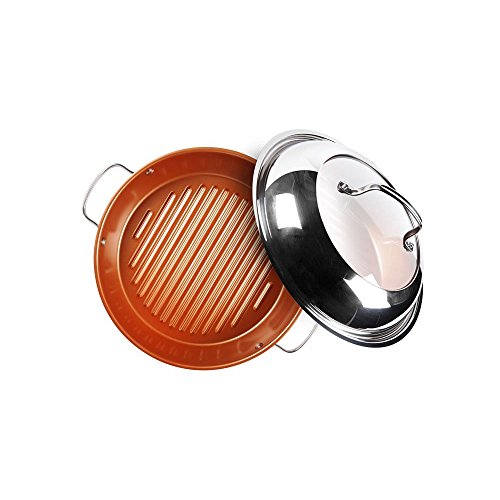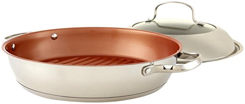 Combining durable, high-quality stainless steel construction and advanced Duralon eco-friendly coating, this new oven-safe pan grills chicken, fish, and vegetables quickly and easily. The Stainless Steel Grill Pan is caoted with a natural, safe ceramic material that lasts longer than conventional non-stick coatings. Free of PTFE, PFOA and Cadmium, this environmentally-friendly coating makes for healthier cooking because it eliminates the need for added fat or oil. Making it easy to get the same grill marks from an outdoor barbeque, the Stainless Steel Grill Pan works on any stovetop- including gas, electric and inductionFeature