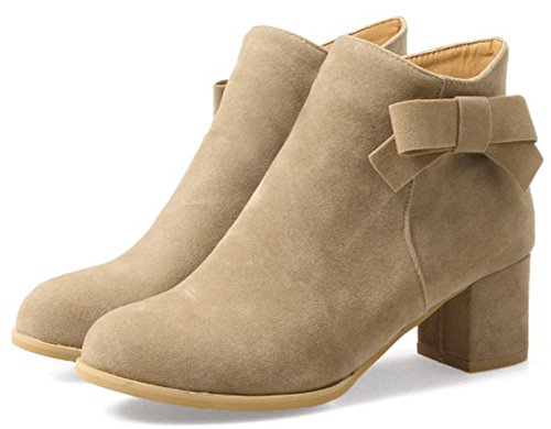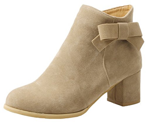 (Mofri)/Women's/Boots/DIRECT FROM USA/Mofri Women's Fashion Faux Suede Bowknot Side Zipper Short Boots Round Toe Block Medium Heel An...