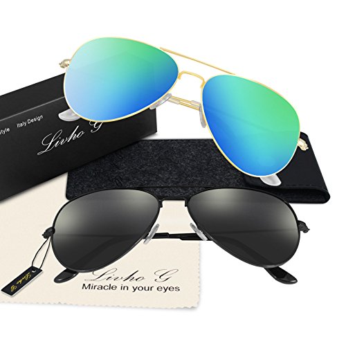 -. Brand : Livhò -. Department : unisex-adult -. ProductGroup : Apparel -. ProductTypeName : EYEWEAR -. Size : Medium -. Title : Livhò G 2 Pack of Sunglasses for Men Women Aviator Polarized Metal Mirror UV 400 Lens Protection